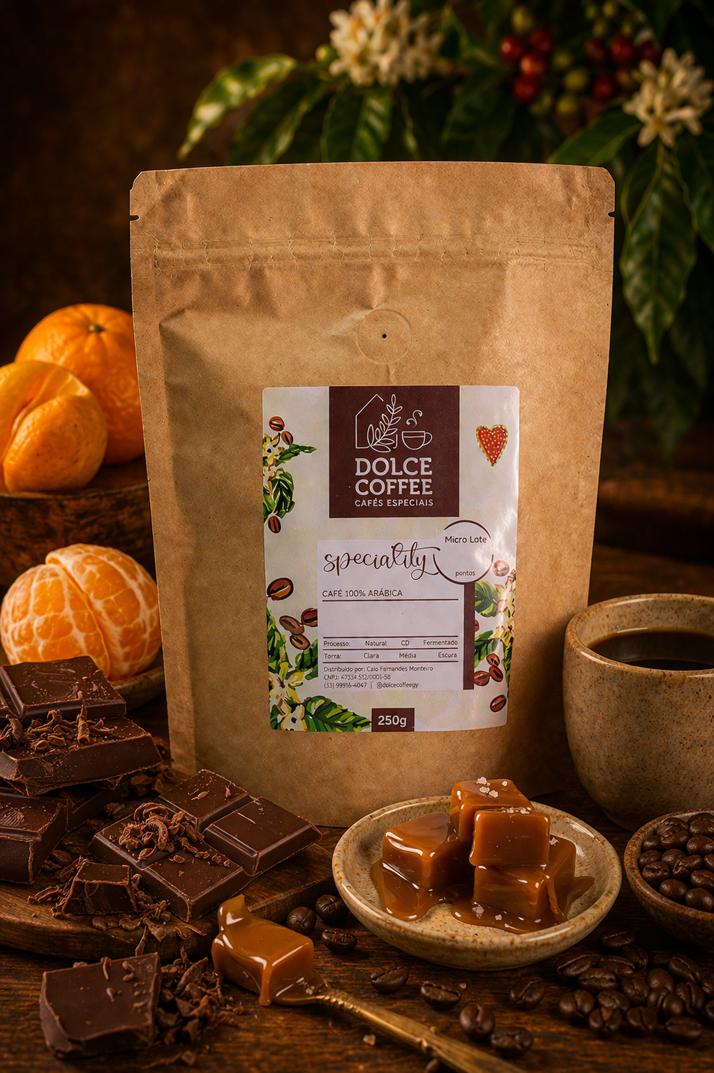 | Sensorial | Acidez Cítrica, Caramelo, Melaço, Tangerina |